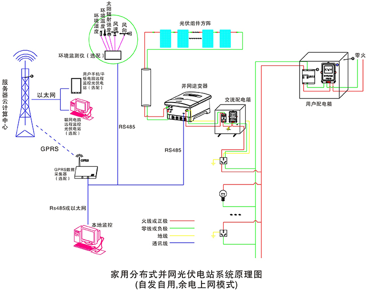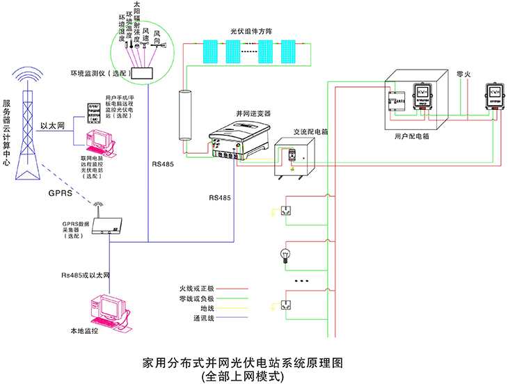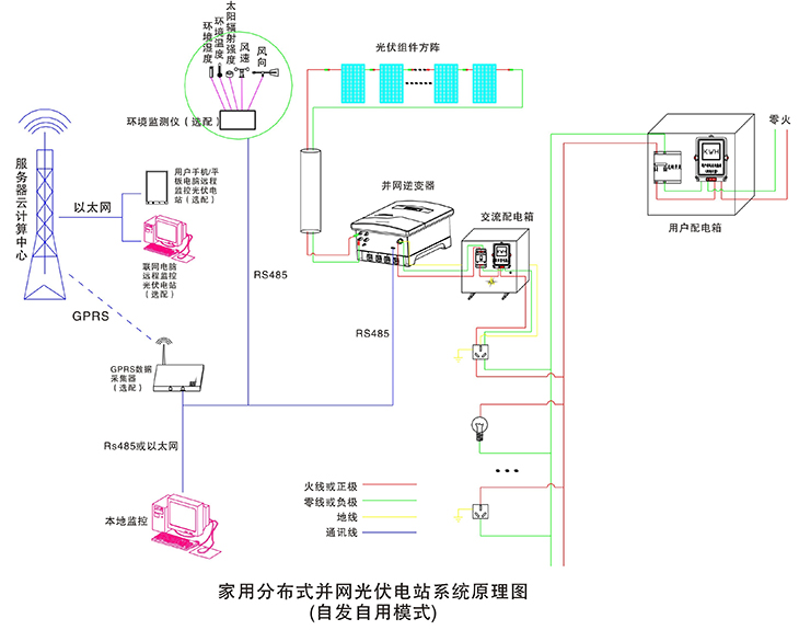 在晴朗的白天,裝在屋頂上的光伏組件發(fā)出的直流電經過并網逆變器逆變成與電網同頻率同相位的單相交流電給負載進行供電,在夜晚或陰雨天等太陽光照不足的情況下,系統(tǒng)處于待機狀態(tài),負載用電全部來自電網。您可以通過系統(tǒng)監(jiān)控軟件來實時查看系統(tǒng)的運行狀態(tài)和故障信息,或者是選配遠程通訊數據采集器,將系統(tǒng)工作數據通過GPRS或以太網,傳輸到您的手機、平板電腦或任意一臺聯(lián)網的電腦,以便于您遠程實時掌控電站的信息。