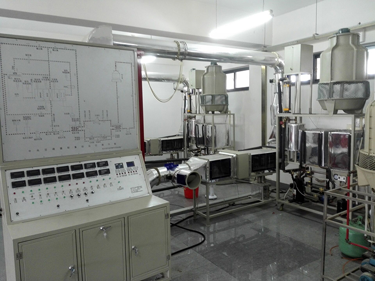 (1)具有蒸汽壓縮式集中式和半集中式中央空調(diào)系統(tǒng)的功能,主要由冷源系統(tǒng)、熱源系統(tǒng)、空氣處理及配送系統(tǒng)及控制與顯示系統(tǒng)等組成。可滿足學(xué)校既能開出驗(yàn)證性實(shí)驗(yàn),也可以開設(shè)故障設(shè)置性實(shí)驗(yàn)滿足畢業(yè)設(shè)計(jì)、教師科研、創(chuàng)新實(shí)驗(yàn)室所需,能實(shí)現(xiàn)一機(jī)多用。