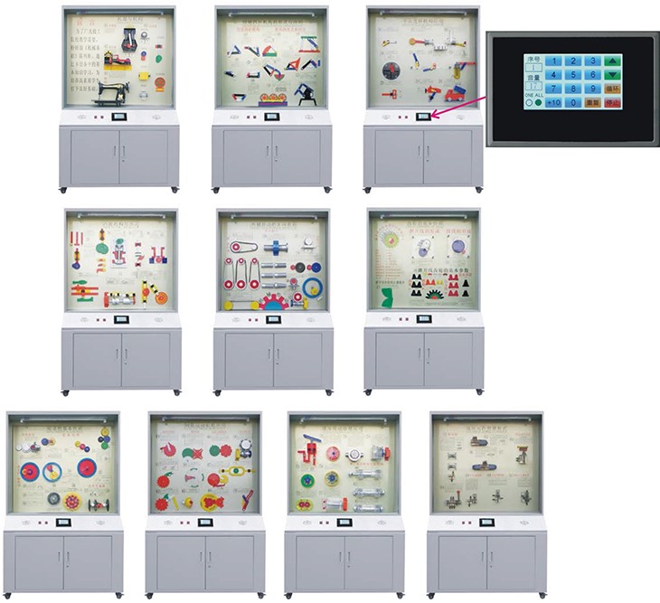 根據(jù)全國技工學(xué)校機(jī)械類通用教材《機(jī)械基礎(chǔ)》示教陳列柜是一套電化教學(xué)設(shè)備。本陳列柜共分十個柜,陳列柜通過機(jī)械模型或?qū)嵨,配合相?yīng)的圖文資料,形象地展示與解說機(jī)械基礎(chǔ)的基本知識,加強(qiáng)學(xué)生對通用機(jī)械基礎(chǔ)的類型、結(jié)構(gòu)特點(diǎn)及其設(shè)計的感性認(rèn)知,為進(jìn)一步學(xué)習(xí)機(jī)械基礎(chǔ)奠定基礎(chǔ)。