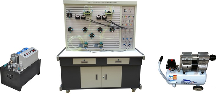 該實驗臺為鐵質雙層亞光密紋噴塑結構。美觀大方,堅固耐用,操作方便;九渲脼椋簹鈩訉嶒炘1;氣動實驗PLC控制模塊1套;低噪音空壓機1臺;液壓實驗元件1套,液壓實驗PLC控制模塊1套;液壓實驗泵站1臺。(計算機根據學校要求另行配置)